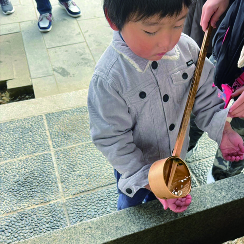 新年初のおでかけは、施設近くの神社に初詣へ。パン!パン!と両手をたたいて上手にお辞儀をして礼拝することができました。